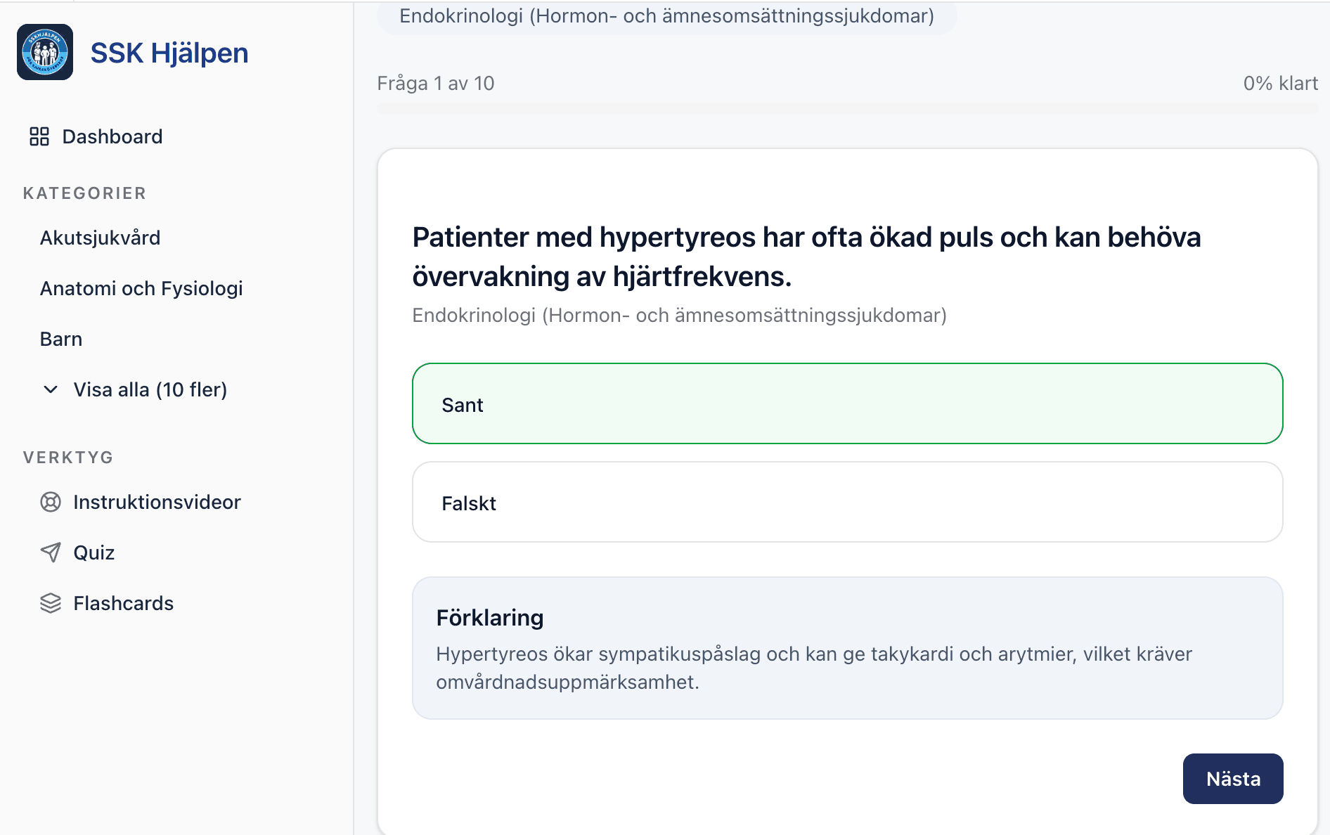 “SSK-hjälpen har gjort det så mycket enklare att plugga inför både tentor och VFU. Älskar instruktionsfilmerna!”